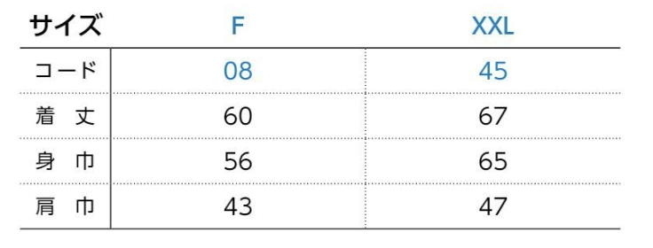| サイズ | F~XXL |