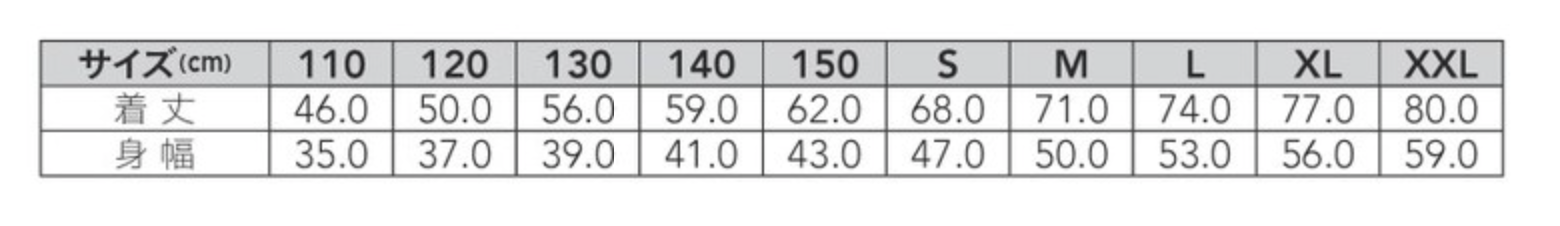 | サイズ | 110~XXL |